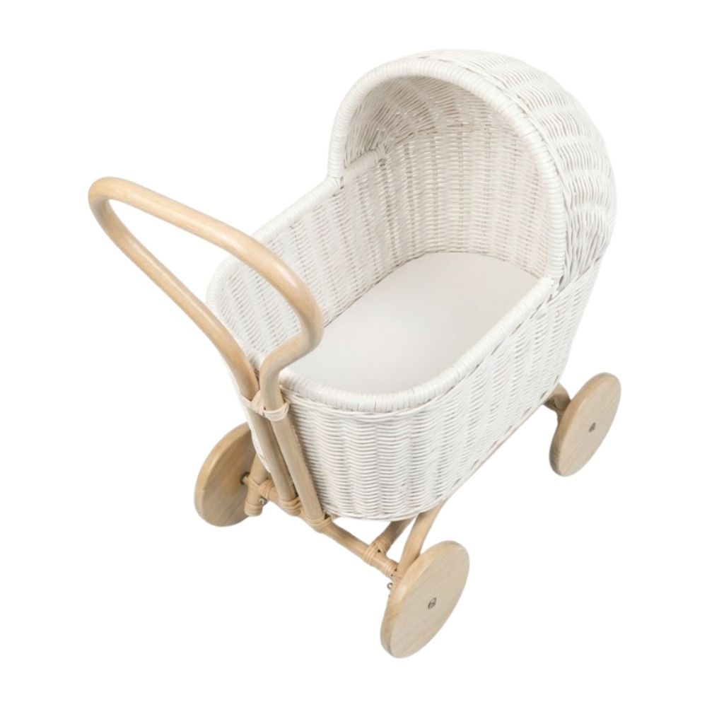White Rattan Doll Stroller